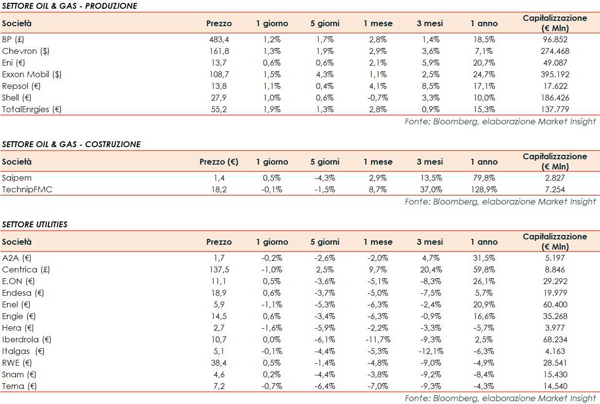 Si riporta l’andamento odierno dei principali titoli internazionali del settore energetico: