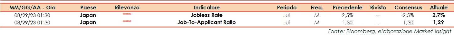Secondo quanto comunicato dal ministero di Affari interni e Comunicazione nipponico, nel mese di luglio il tasso di disoccupazione in Giappone si è attestato al 2,7%, superiore al dato del mese precedente e del consensus, entrambi al 2,5%
