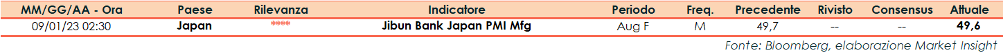 Il dato finale di agosto del PMI manifatturiero giapponese della Jibun Bank si è attestato a 49,6 punti, appena sotto la rilevazione preliminare (49,7 punti), in linea con il dato finale di luglio.