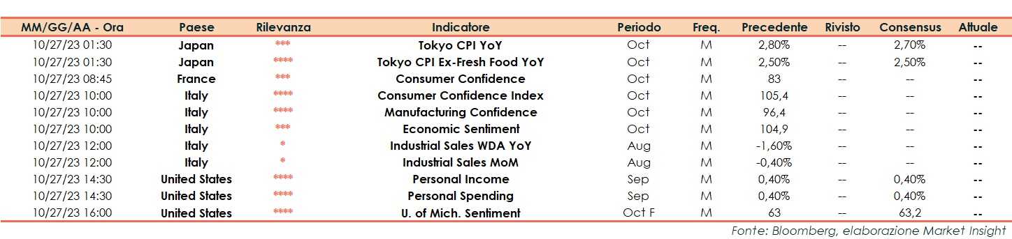 Ore 10:00 Italia: Fiducia consumatori e manifatturiera, ottobre;