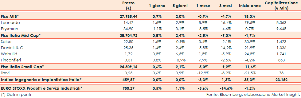 Ieri il Ftse Italia Ingegneria e Impiantistica ha riportato una performance stabile rispetto al +0,5% del corrispondente europeo e al +0,9% del Ftse Mib.