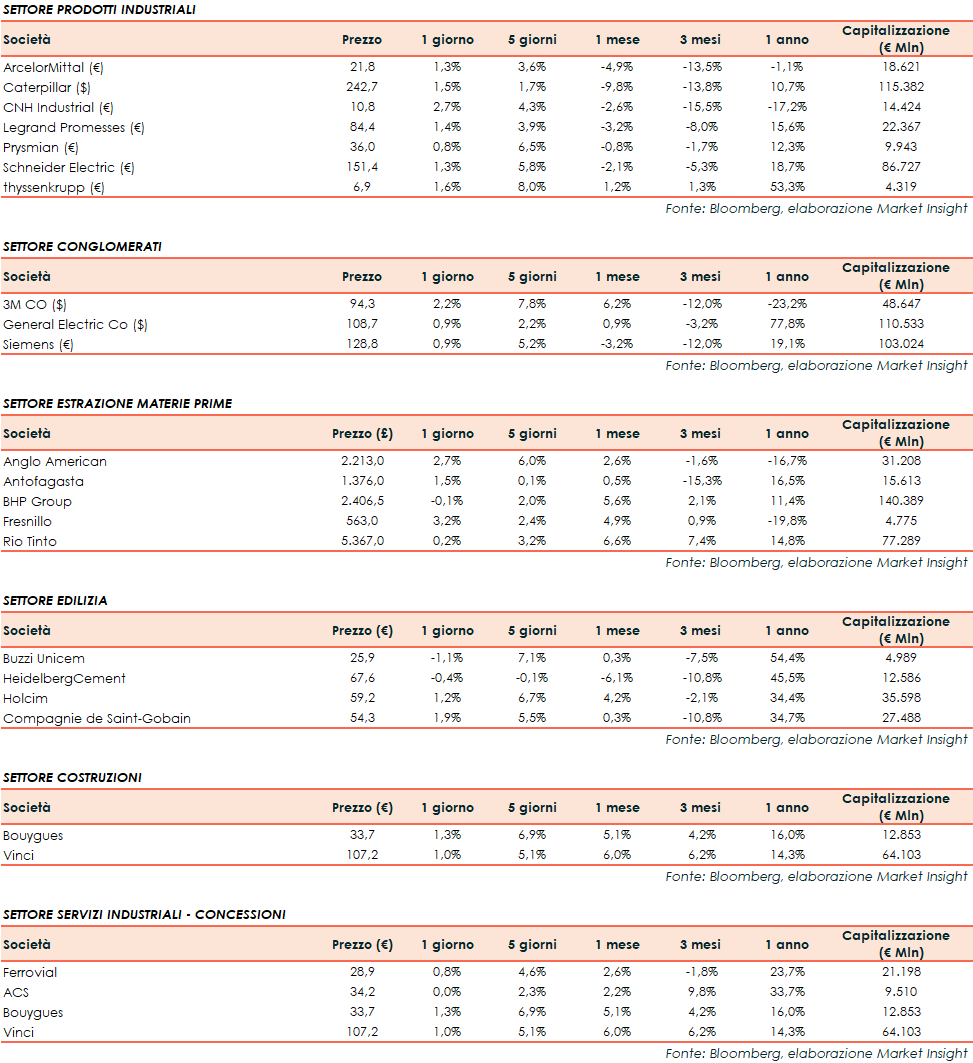Si riporta l’andamento odierno dei principali titoli internazionali del settore industriale:
